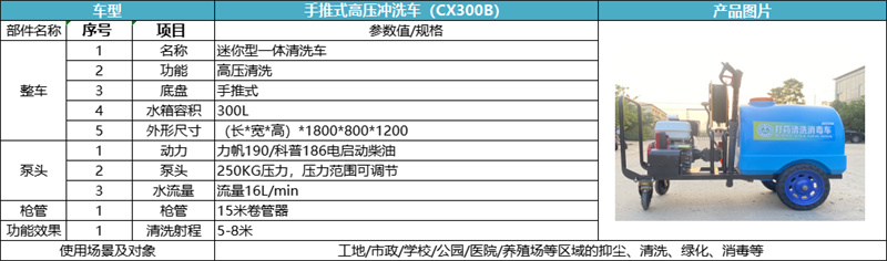 保定坦洁手推式高压冲洗车CX300B