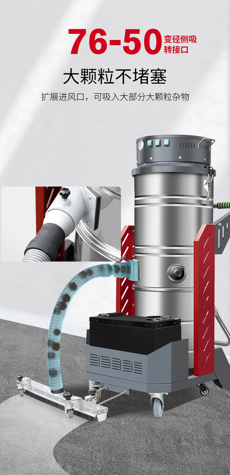 保定坦洁380V双桶不锈钢工业吸尘器X7系列